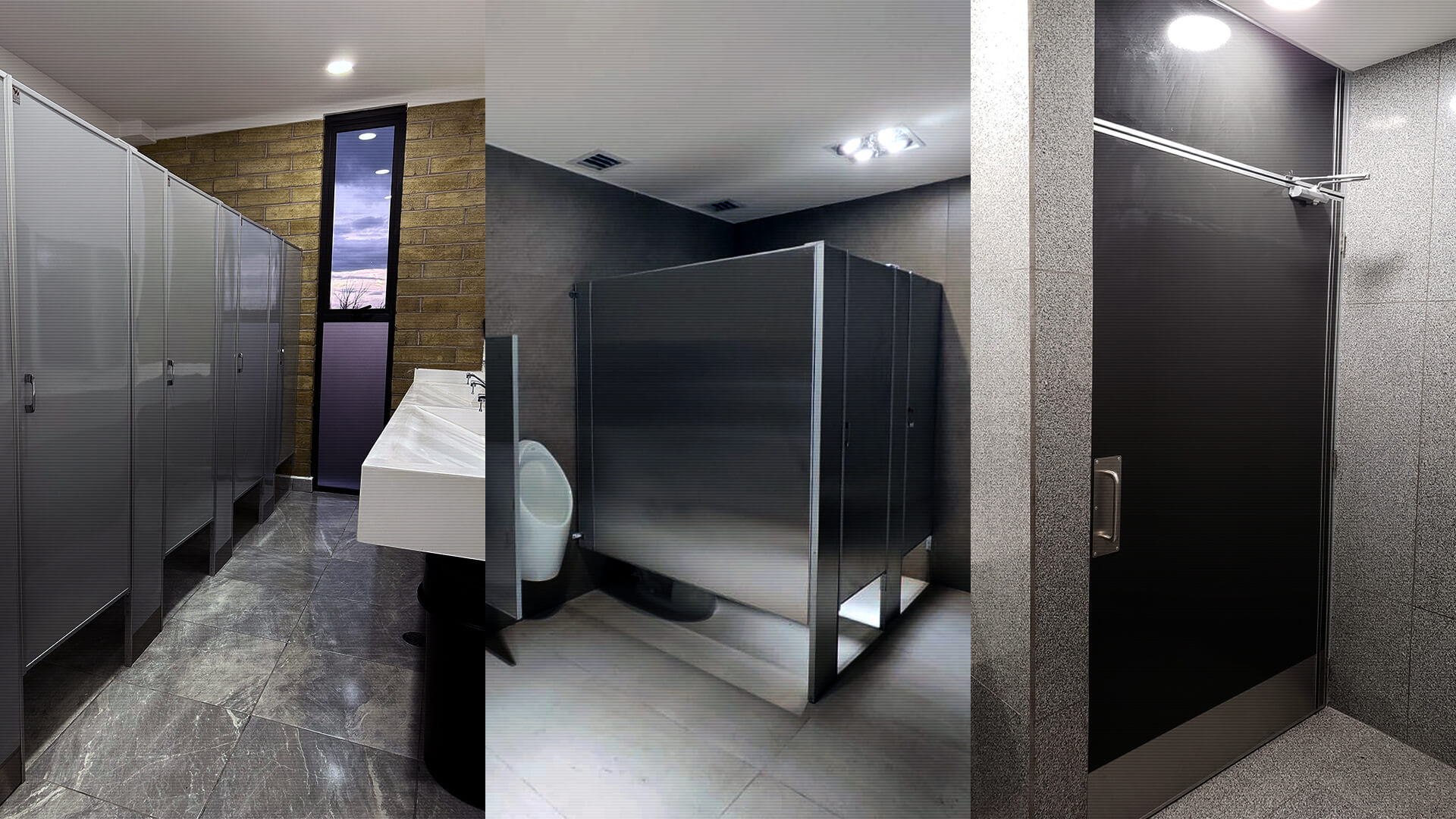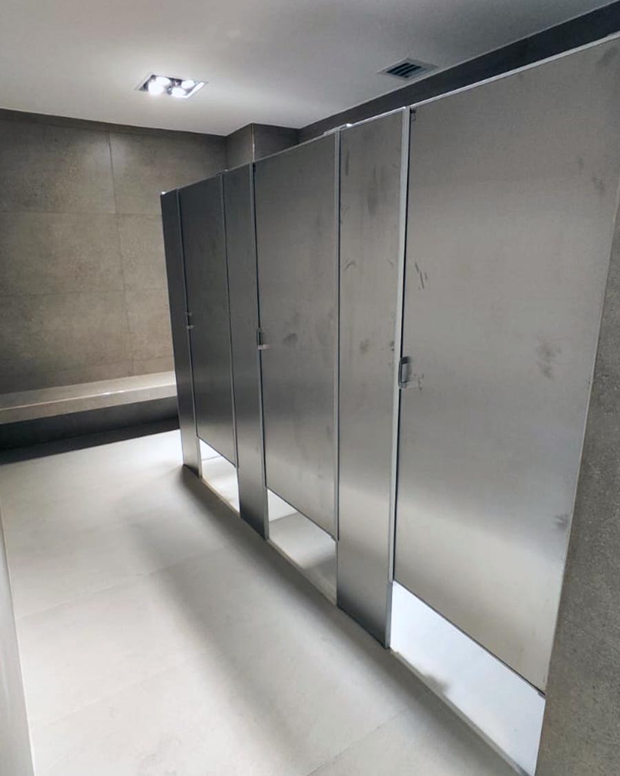 Este material es ideal para áreas de alto tránsito, ya que es anticorrosivo, fácil de limpiar y altamente resistente al desgaste. Diseñadas para combinar funcionalidad y estética, estas mamparas y puertas son perfectas para baños públicos, hospitales, oficinas y otros entornos donde la calidad premium es esencial.